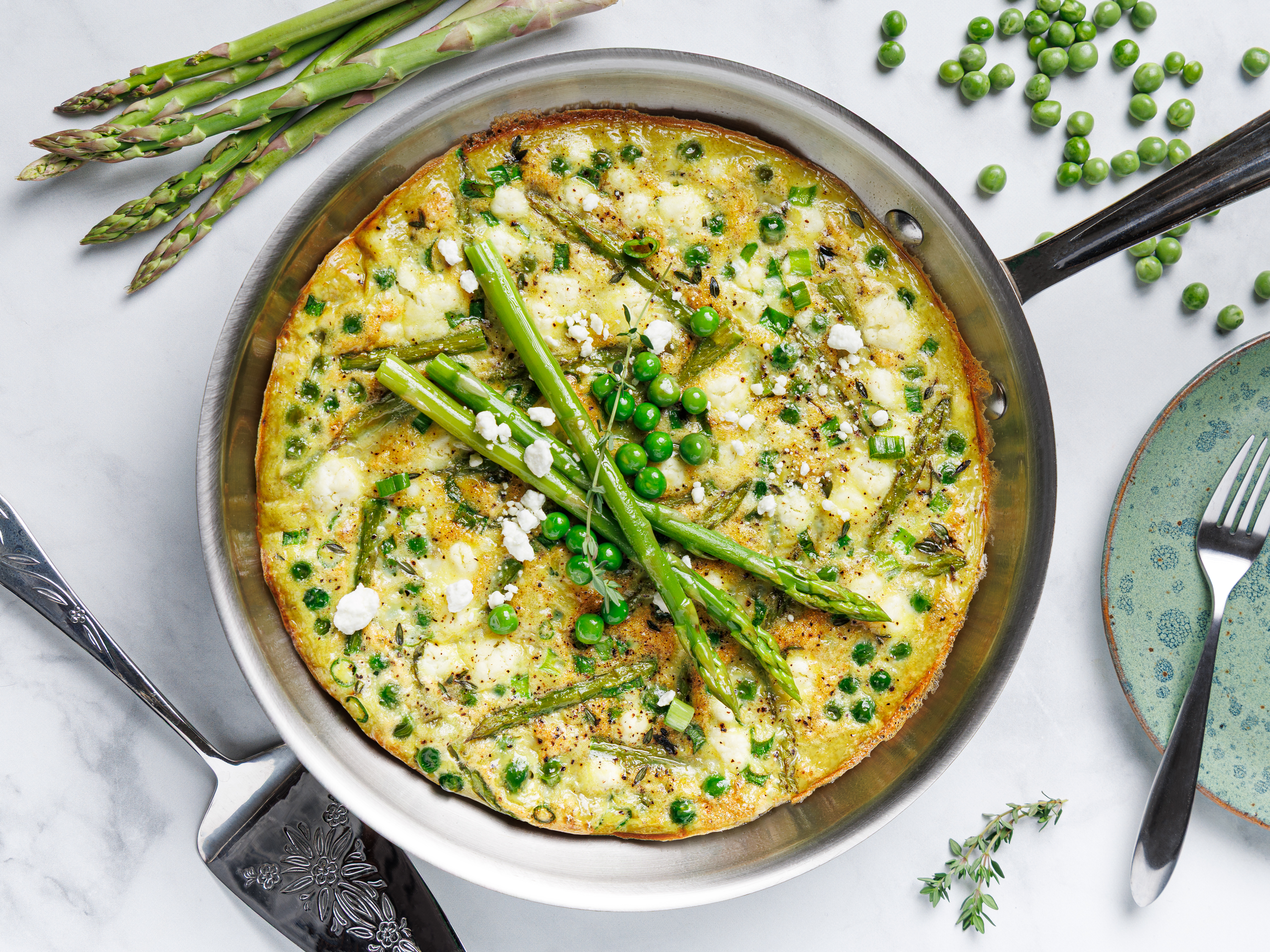 Fiber-rich asparagus and sweet peas create a fresh, garden-inspired frittata that celebrates the fla...